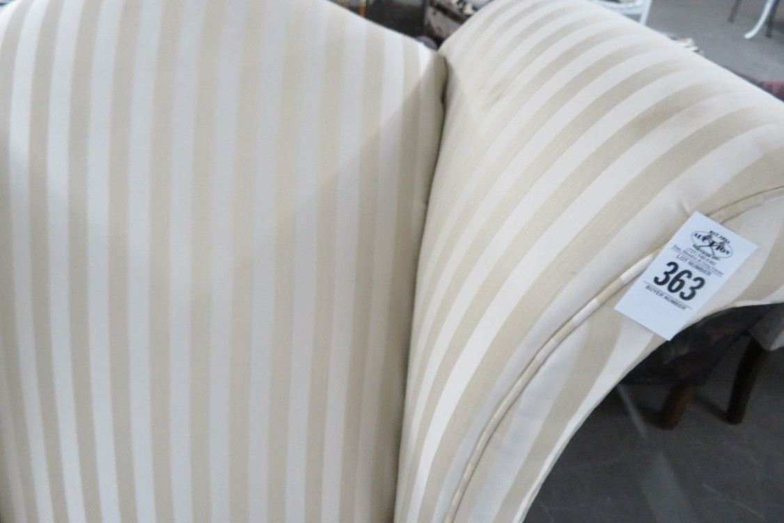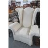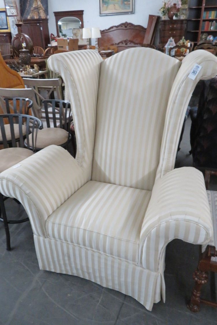 Tan Striped Fabric Wingback Armchair