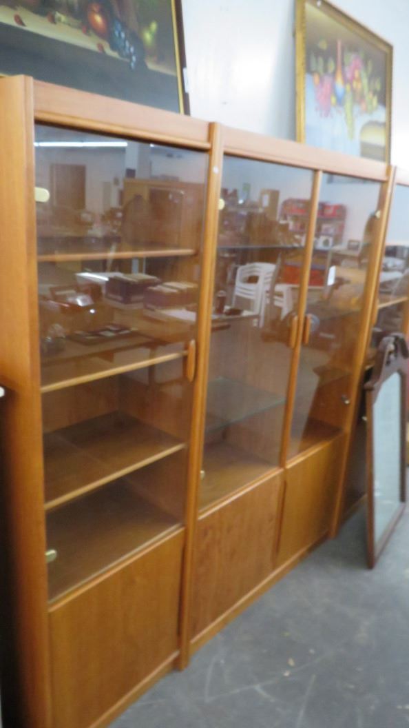 Teak 3 Pc. Glass Door Cabinet Set