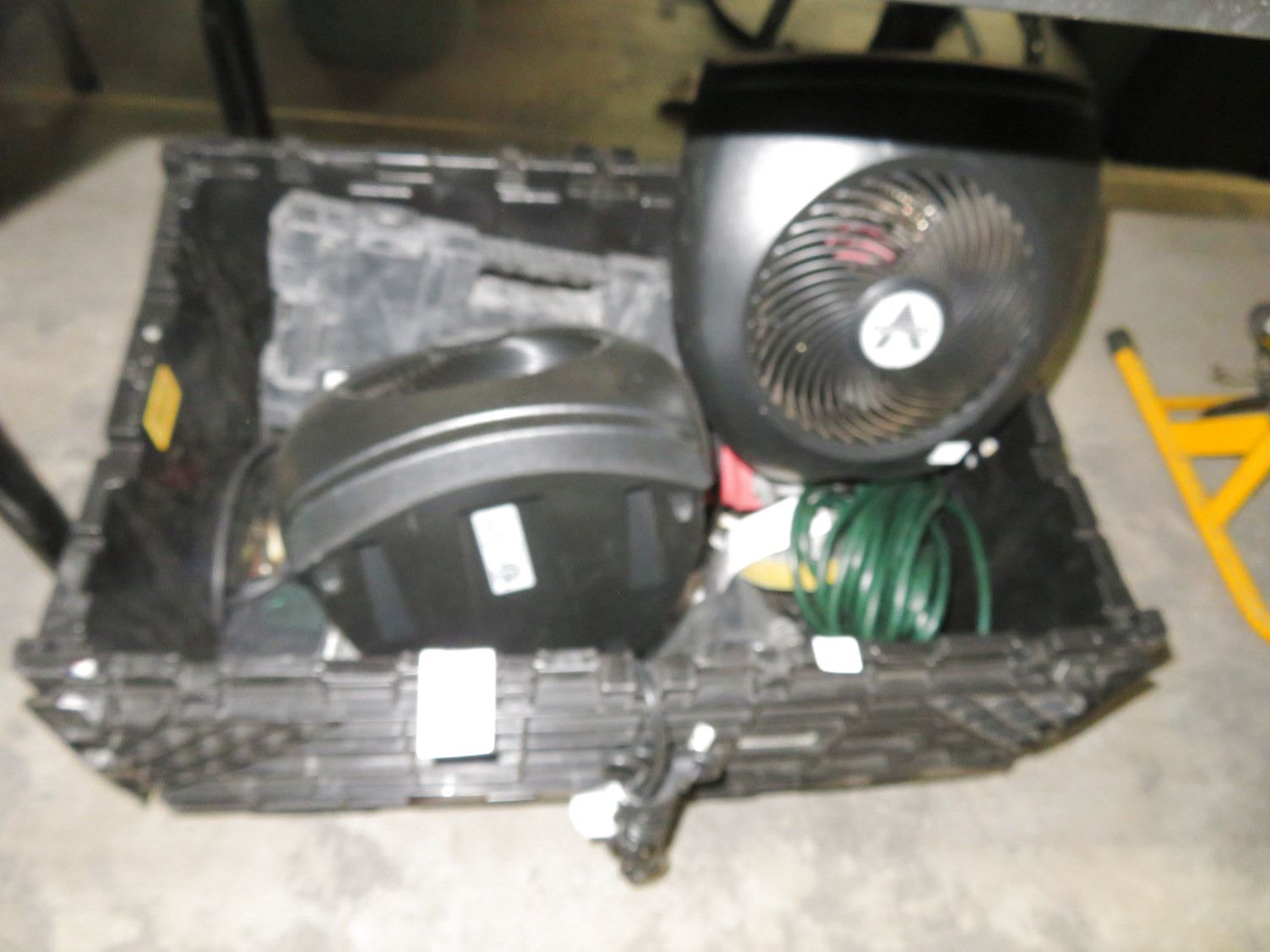 Tote Vonator Fans, Ext. Cord, Dewalt Hardware Case, Chargers, Supplies