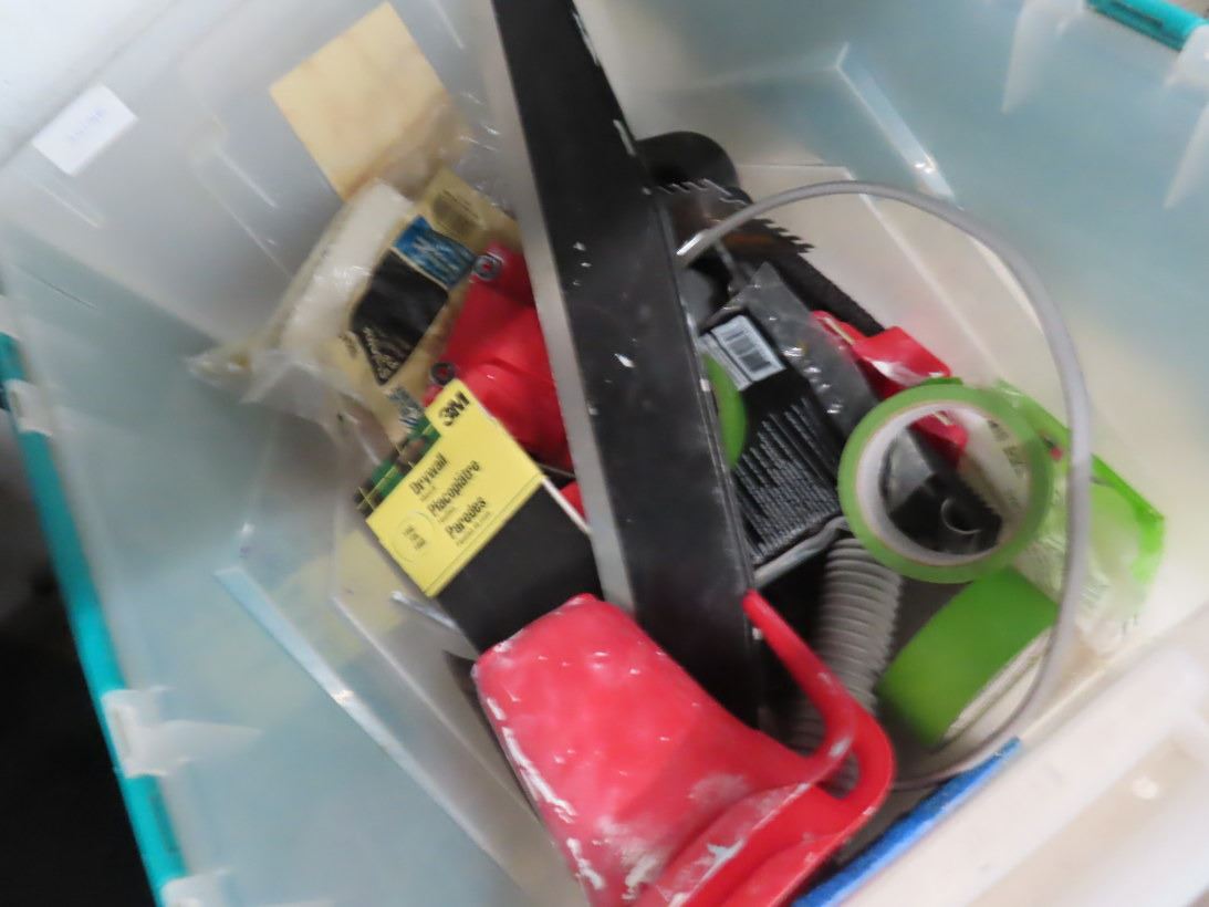 Tote w/Large Scrappers, Masonary Tools, Tape, Supplies