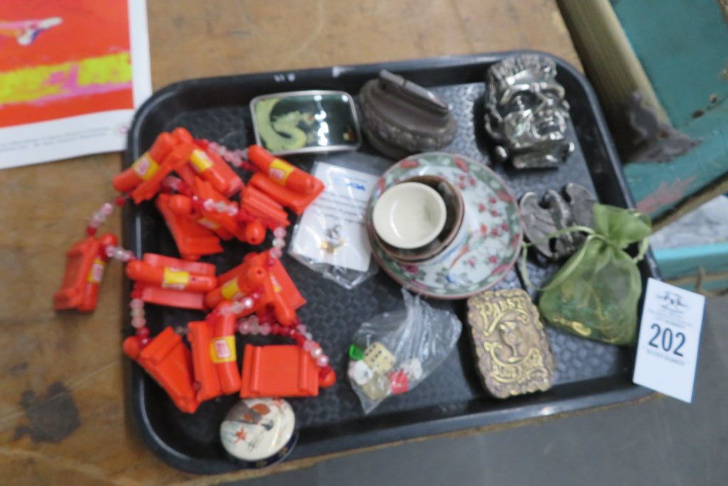 Tray Lot of Metal Belt Buckles, Oscar Mayer Whistle
