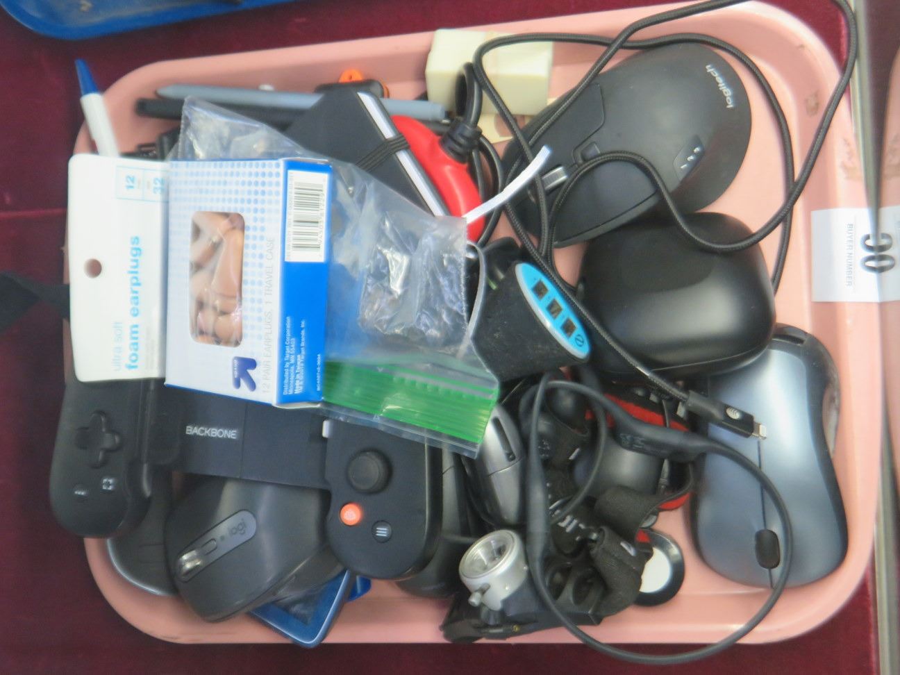 Tray Lot of Remotes, Chargers, Stylus And Mouse