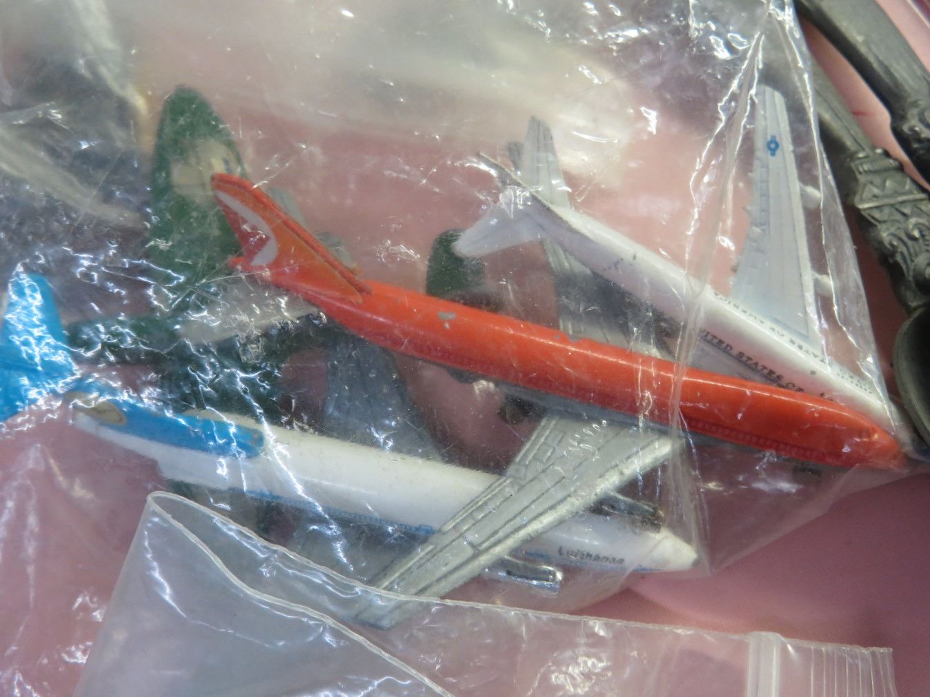 Tray of Die Cast Mini Planes/Cars, Pins, Spoon Set