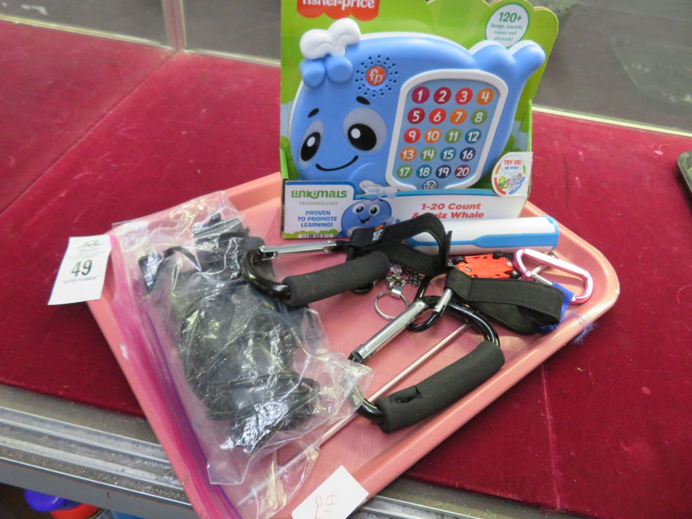 Tray of Fisher Price Toy (New), Luggage Clamps, Hair Clippers