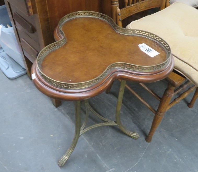 Tre Foil Accessory Table w/Brass Legs & Brass Edge