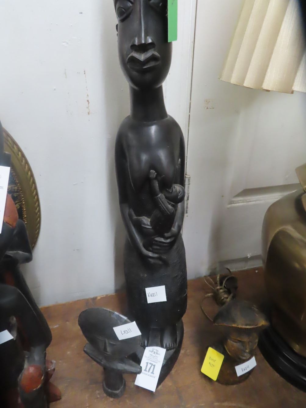 Tribal Mother Statue, African Carved Figurine - 3 Pc.