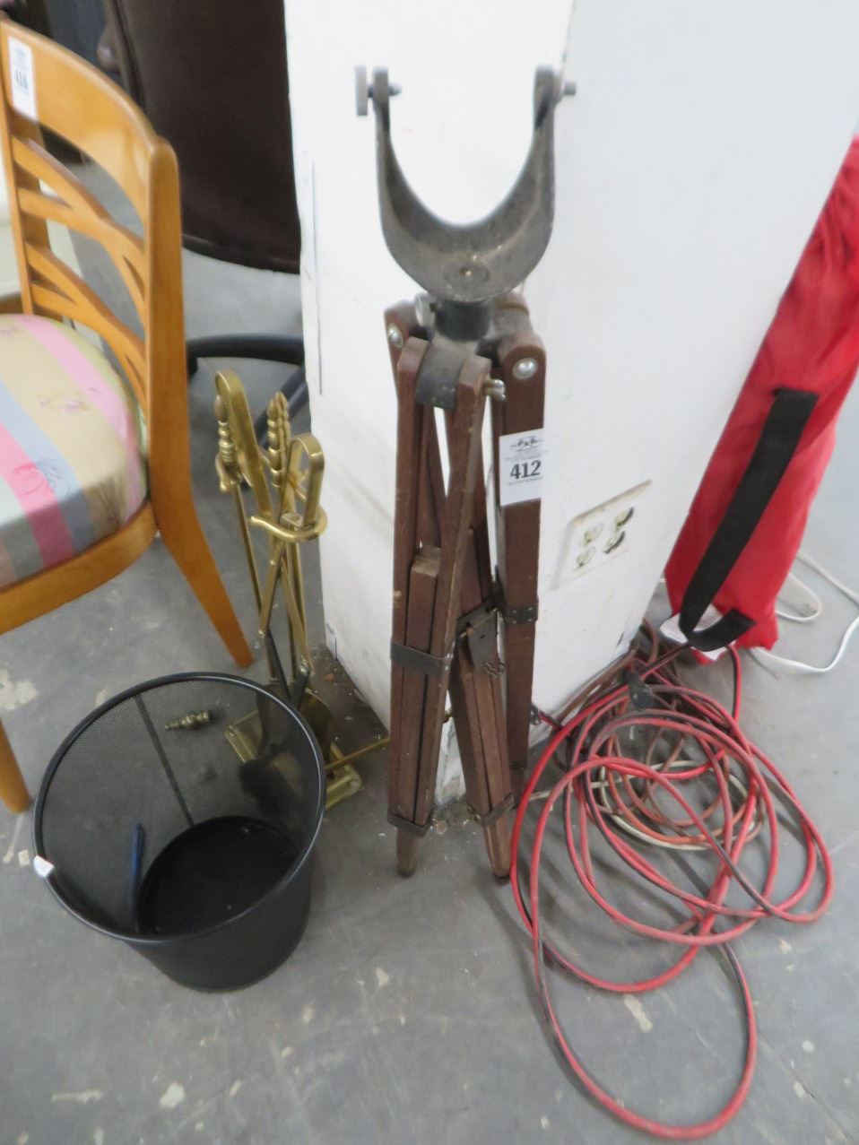 Tripod Fireplace Poker Set, Waste Can