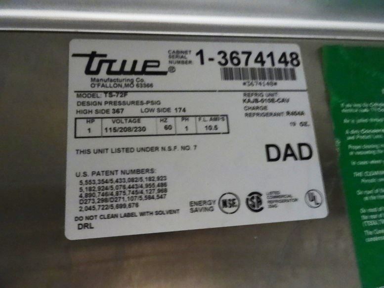 True S/S 3-Dr. Reach-In Freezer - Tested at -8 deg.
