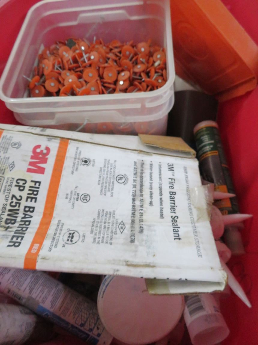 Tub Lot of Asst. Adhesive, Tacks, Supplies