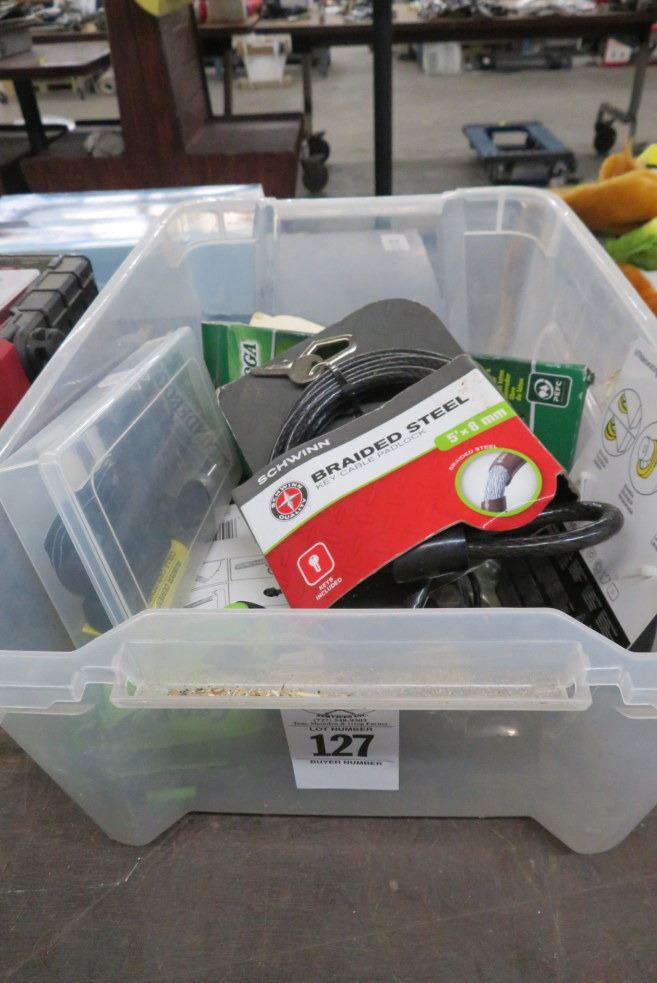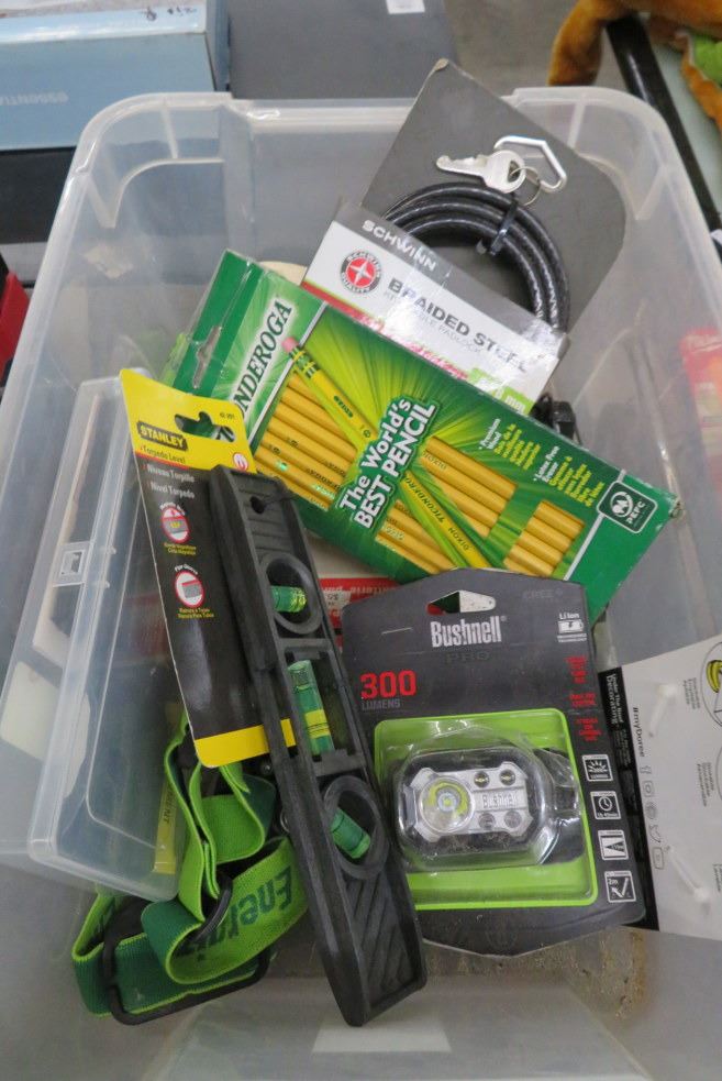 Tub Lot of Level, Lights, Connectors & Padlock