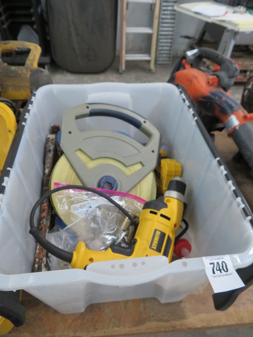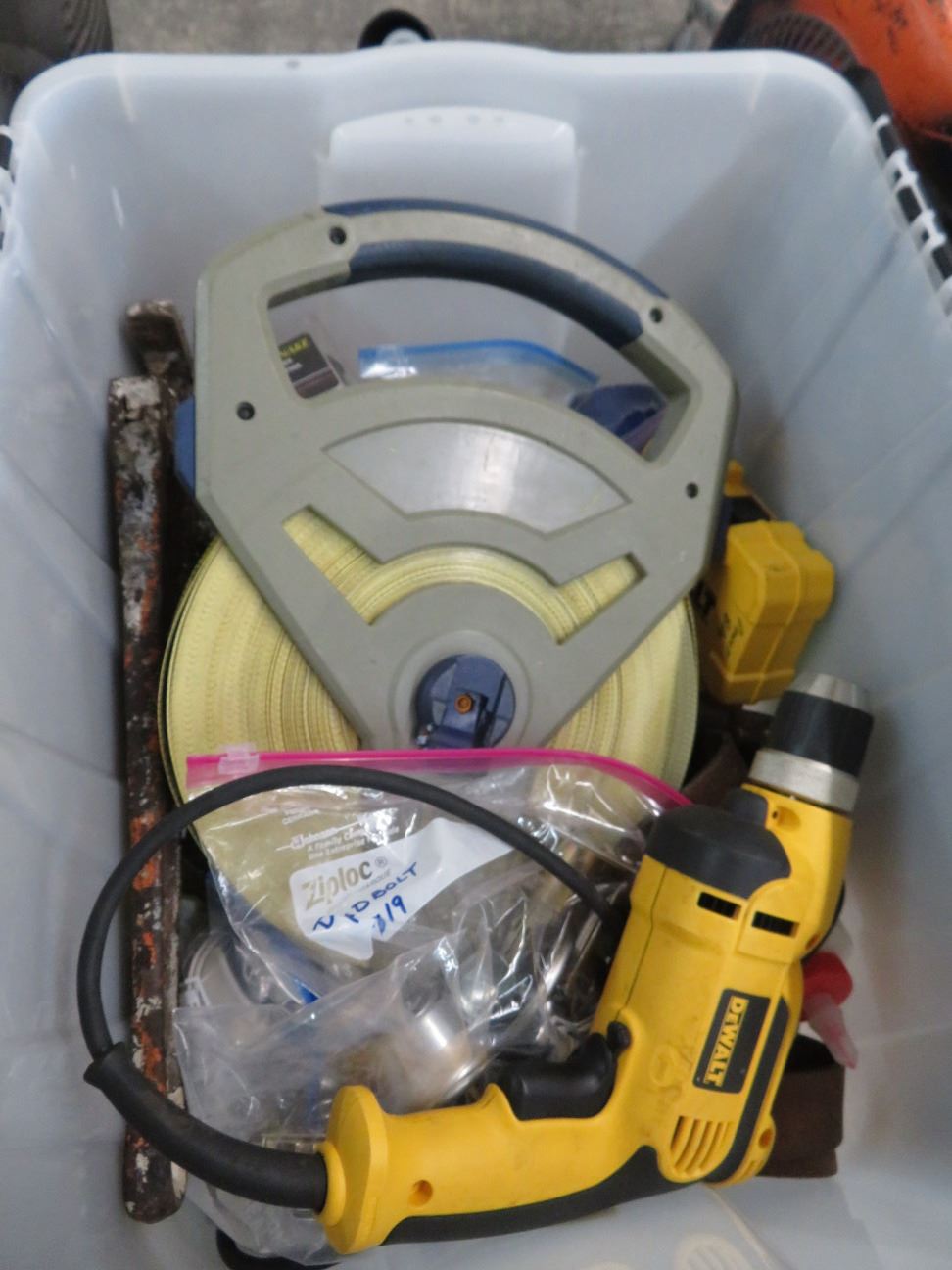 Tub w/Dewalt Drill, Tape Measure, Pipe Wrench & More