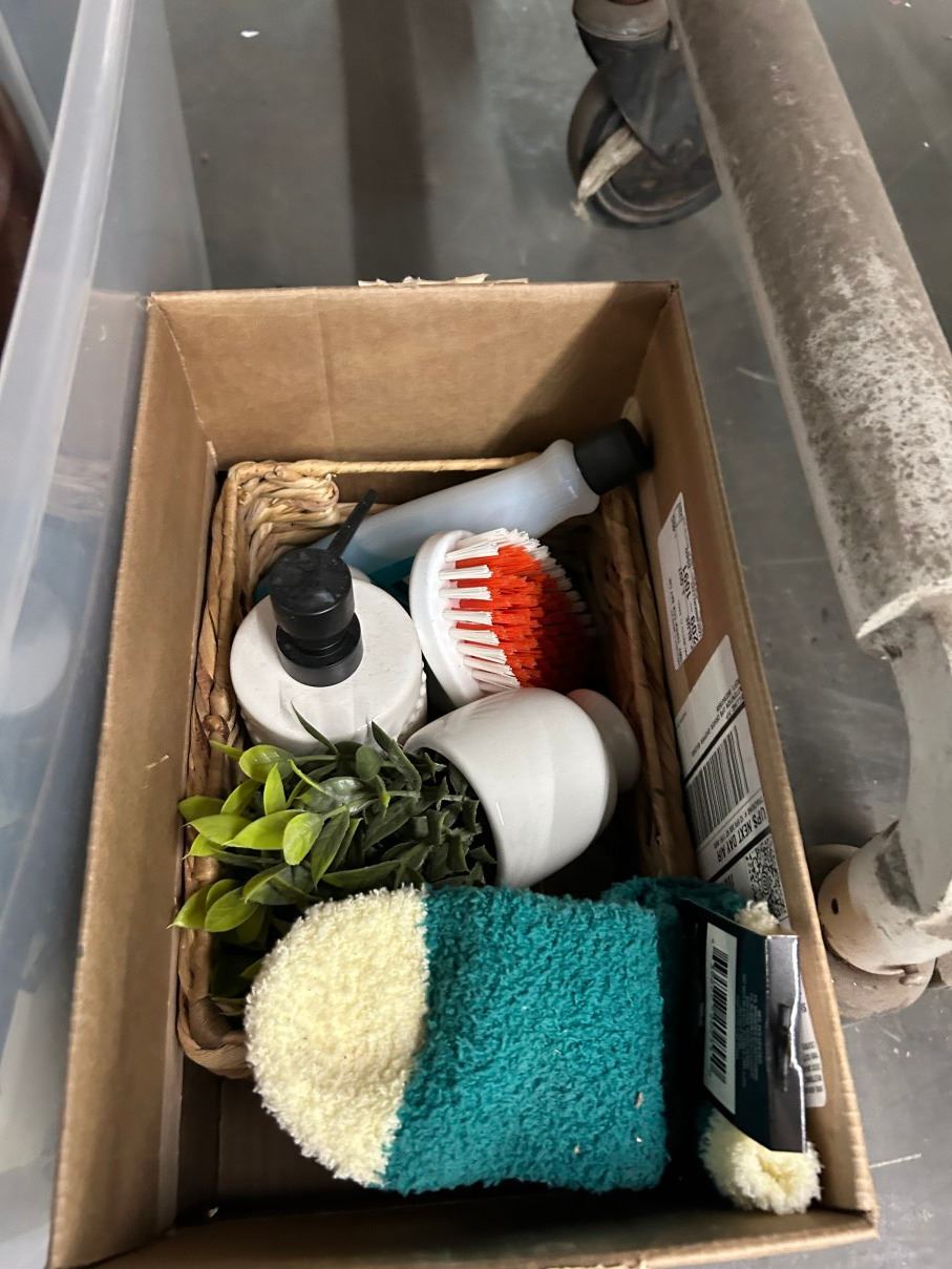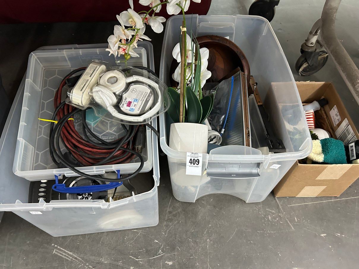 Tubs 3 w/Blender, Silk Plant, Headphones, Asst. Home Goods