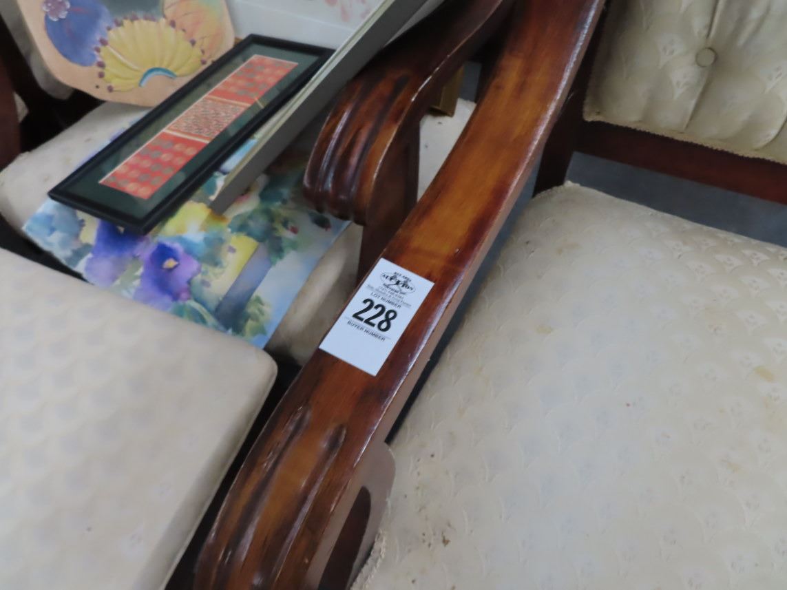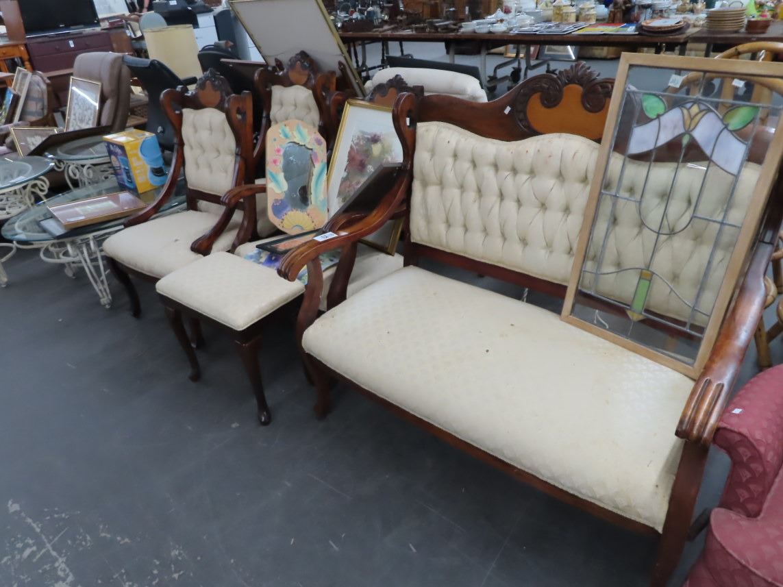 Tufted Carved Mahogany Loveseat/3 Armchairs/Stool Set