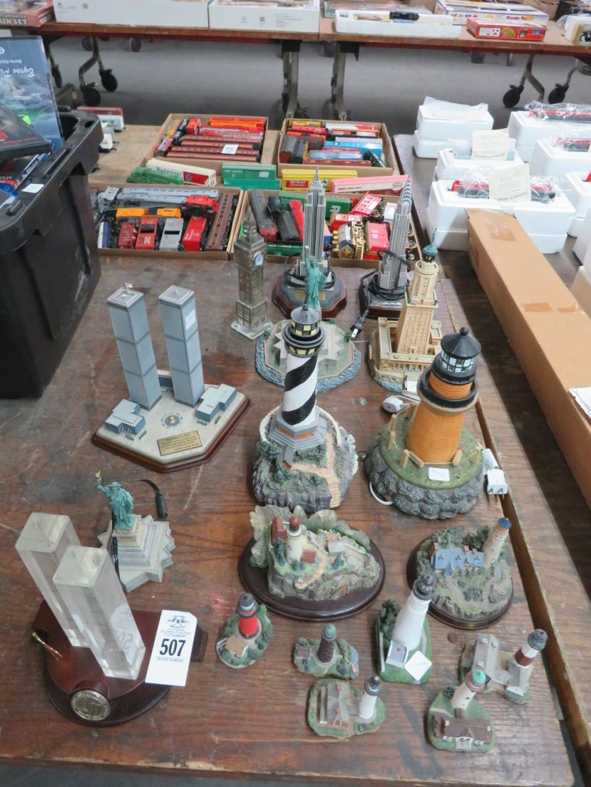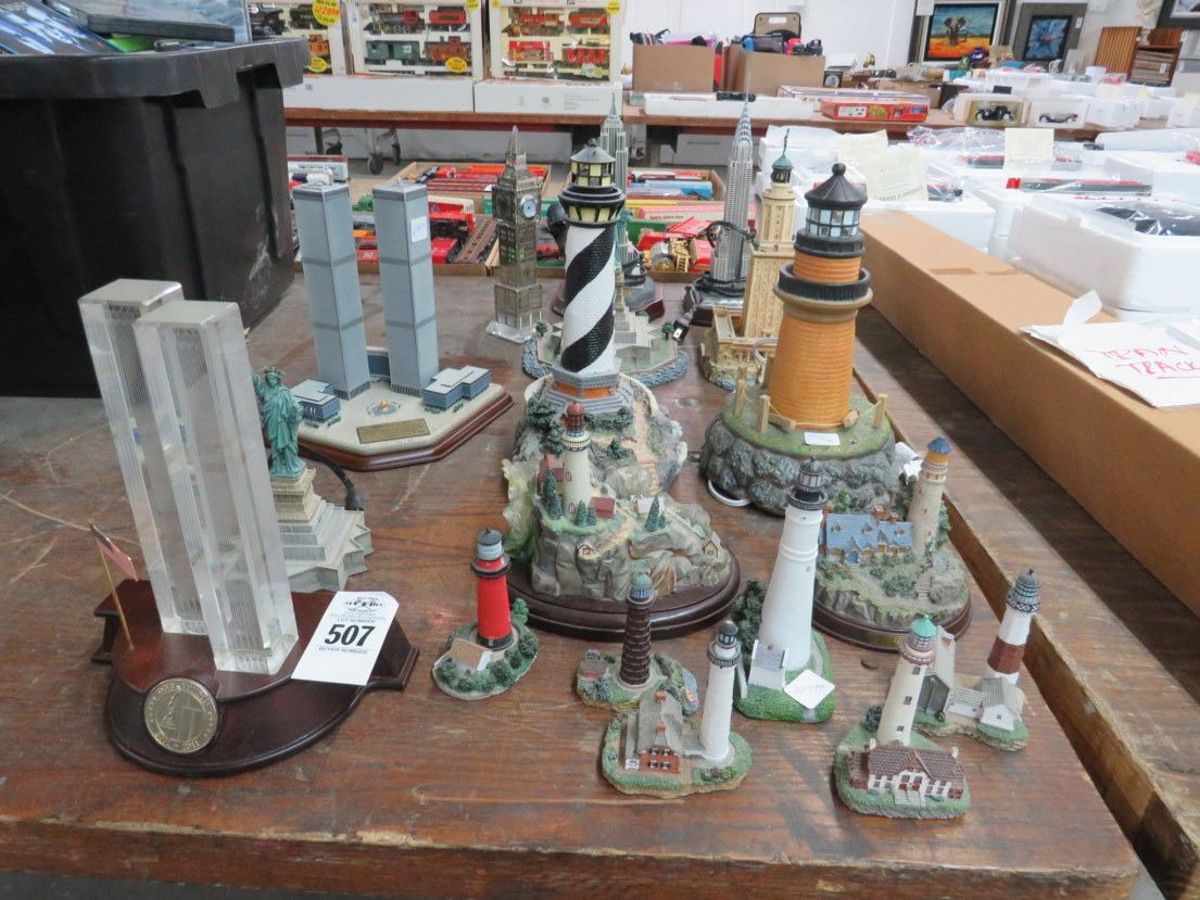 Twin Towers, Statue Of Liberty, Empire State Building, Big Ben Miniatures, Asst. Lighthouses