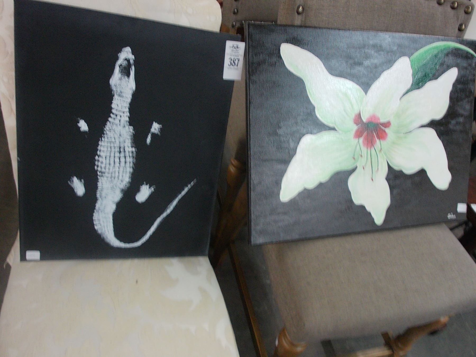 Unframed Oil On Canvas Alligator/Floral