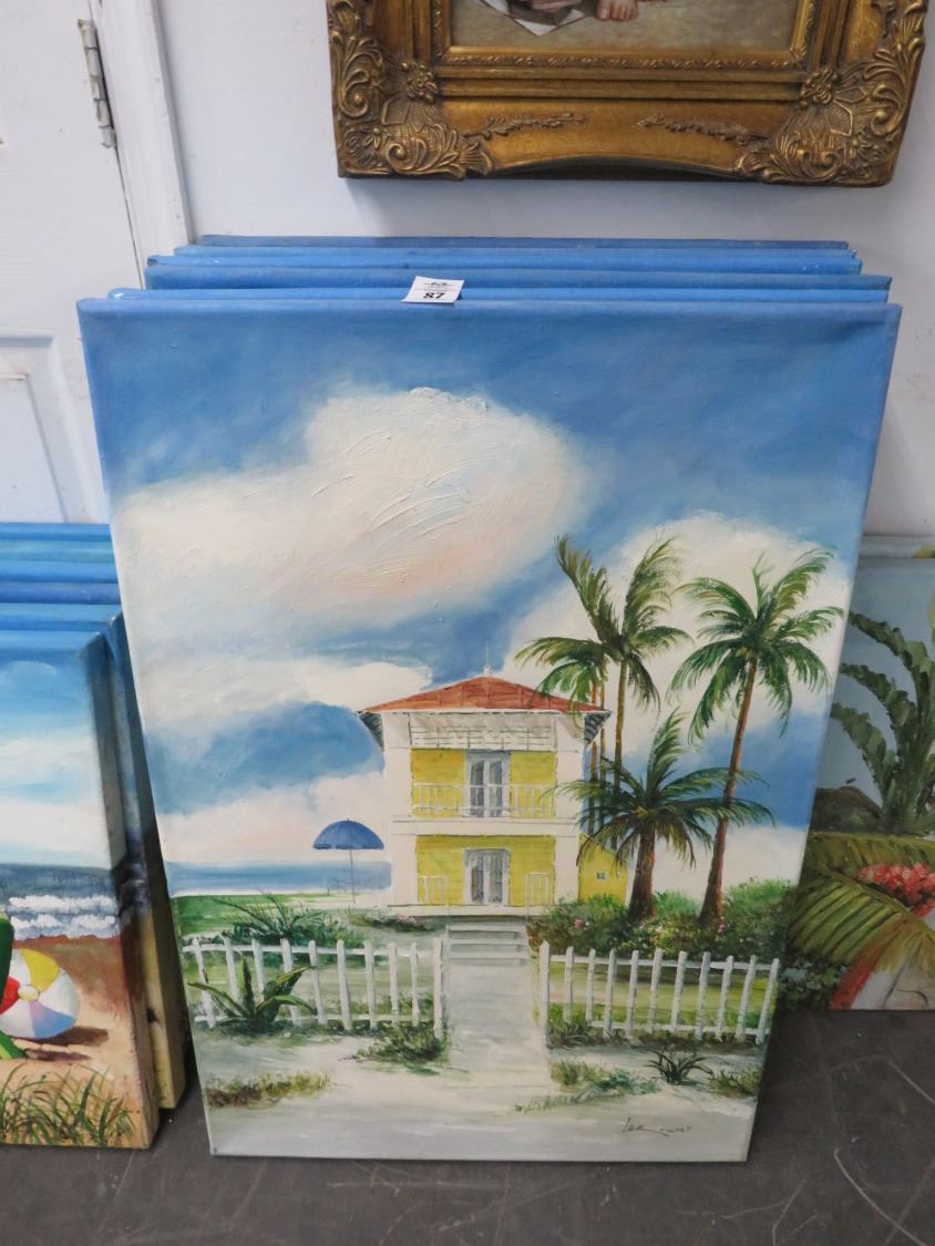 Unframed Oil On Canvas Beach House - 6