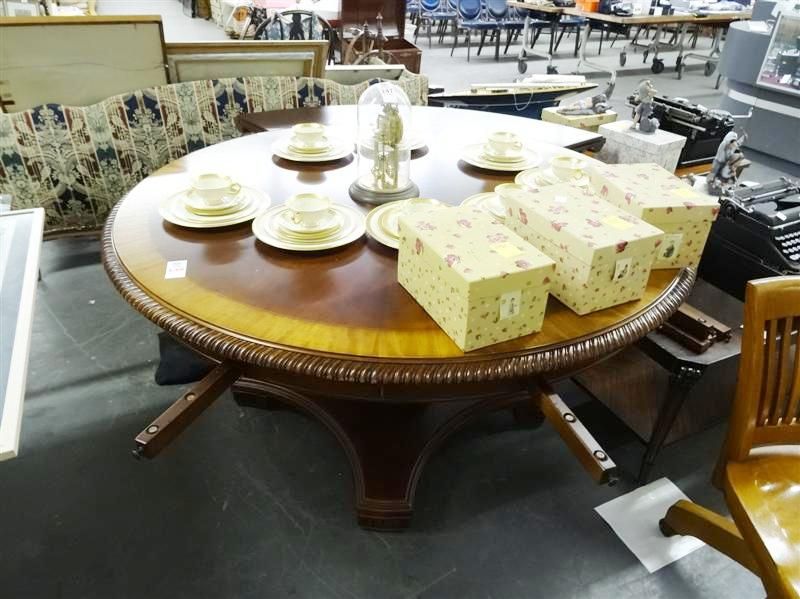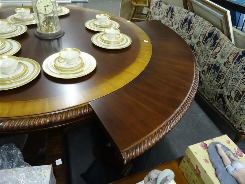 Unique Mahogany Round Dining Table w/Extensions