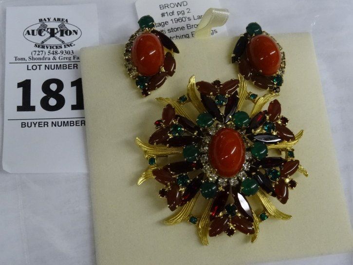 Vintage 1960's Multi Stone Brooch & Earring Set