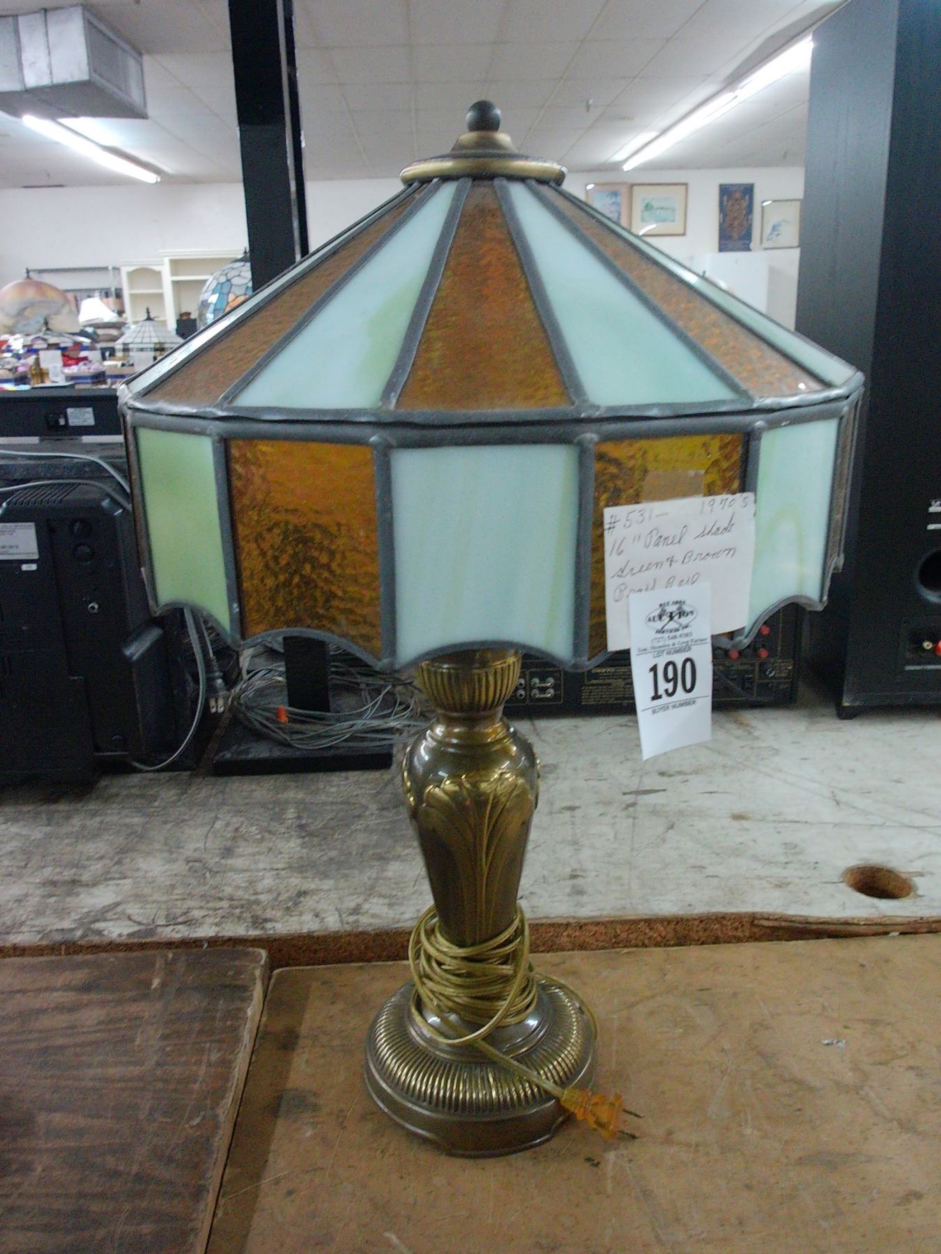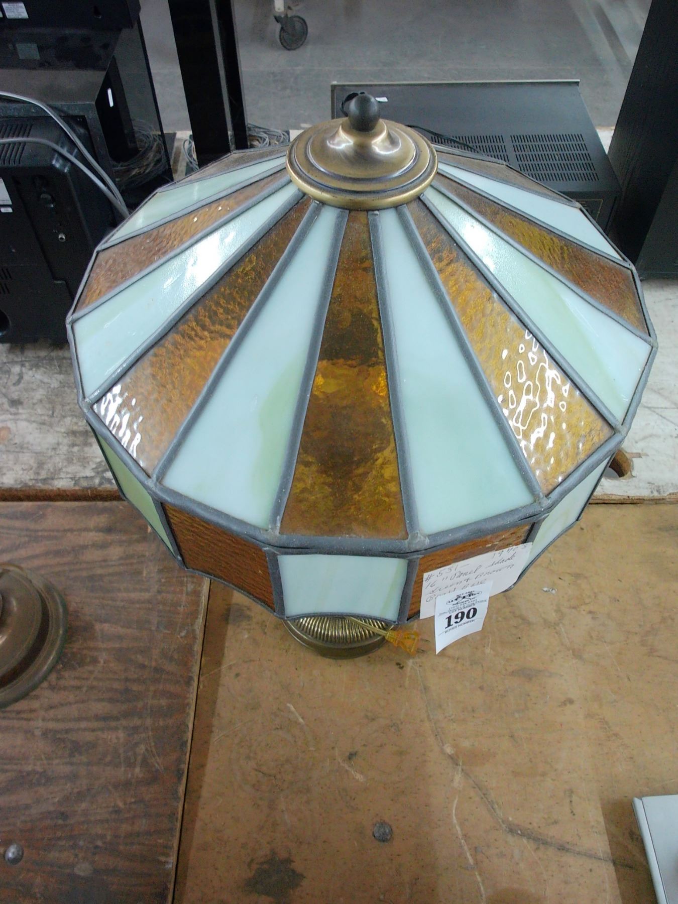 Vintage Brass Base Lamp w/Brown Glass Panel Shade