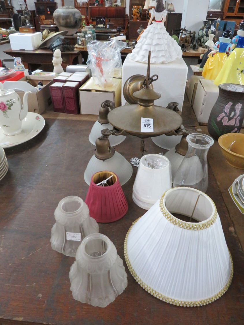 Vintage Brass Chandelier, Asst. Shades