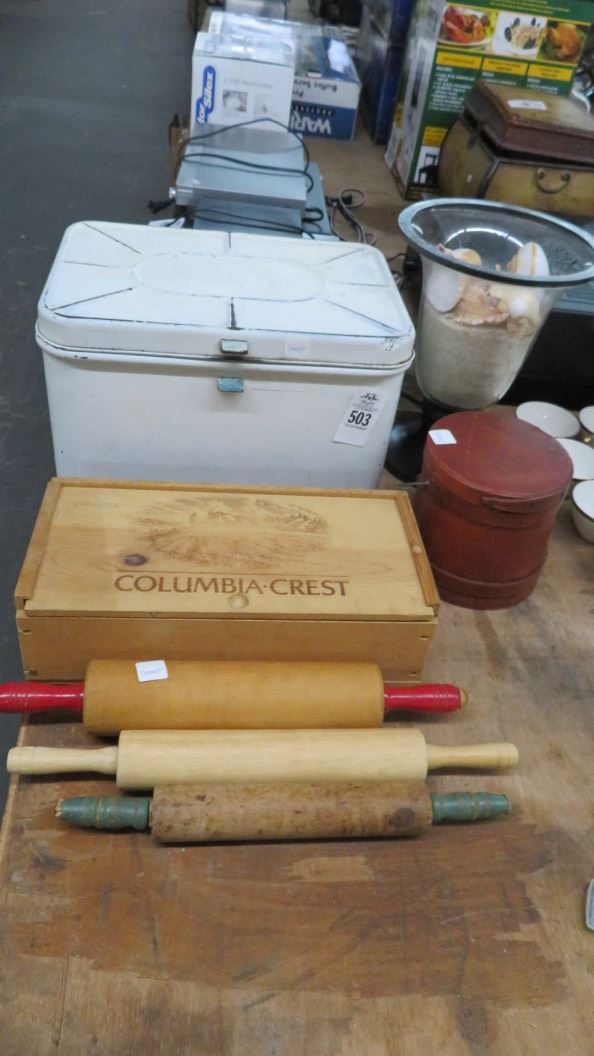 Vintage Bread Box, Urn w/Seashells & Rolling Pins