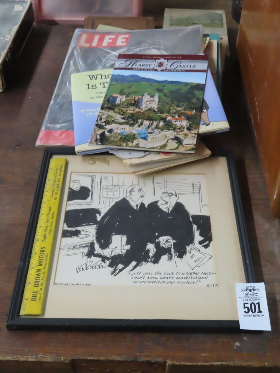 Vintage Comic Sketch, Life Magazine and Travel Books