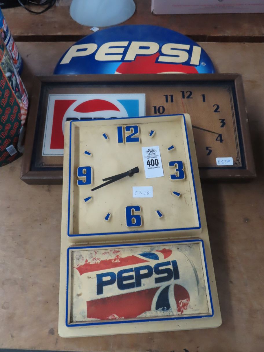 Vintage Pepsi Clocks (2) and Bottle Cap Sign