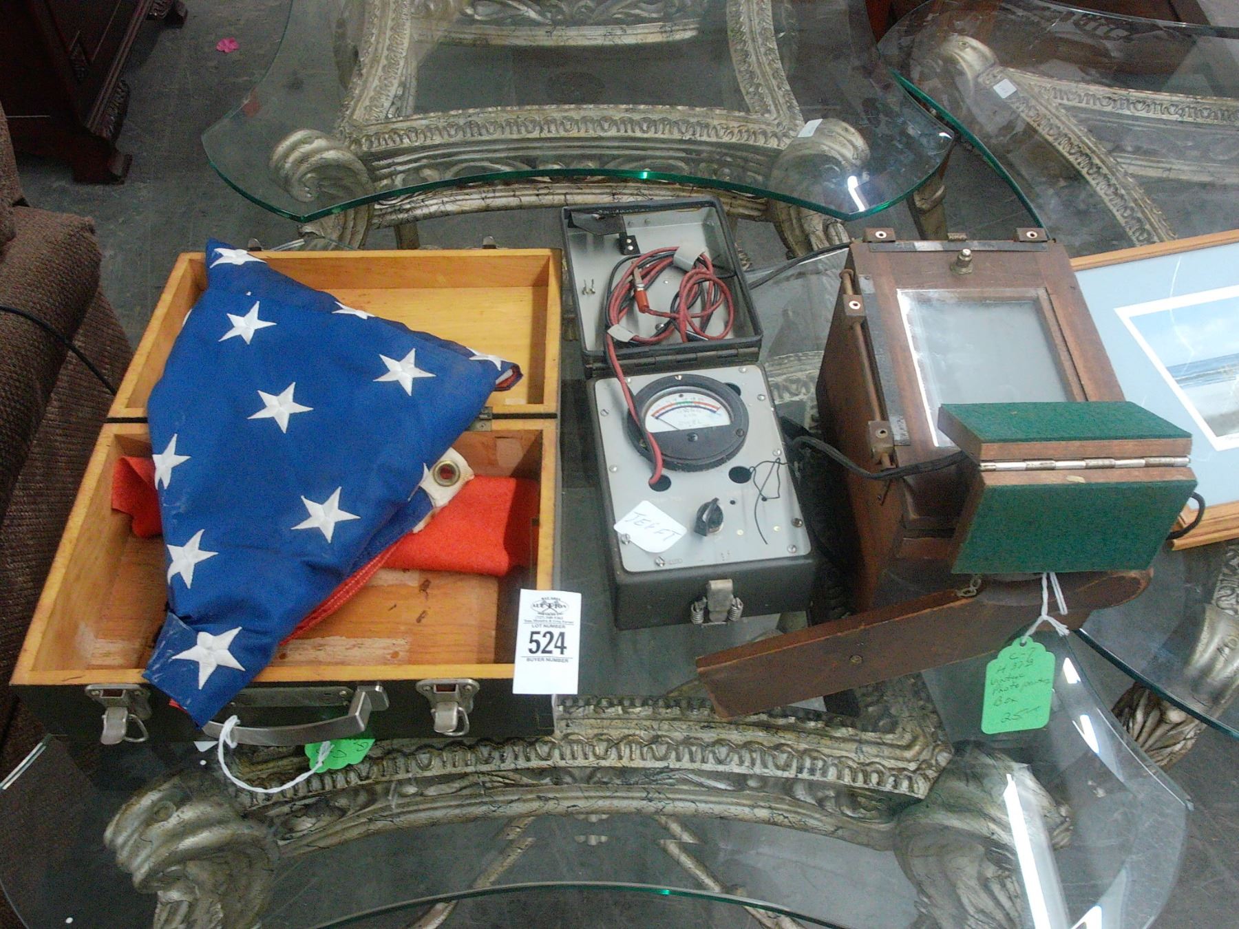 Vintage Photo Printing Box, Battery Tester, Folded Flag w/Box