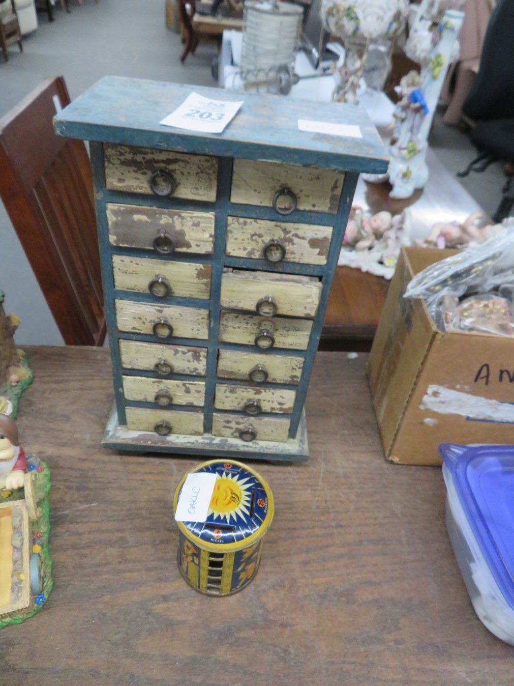Vintage Wood Jewelry Chest and Tin Quarter Bank