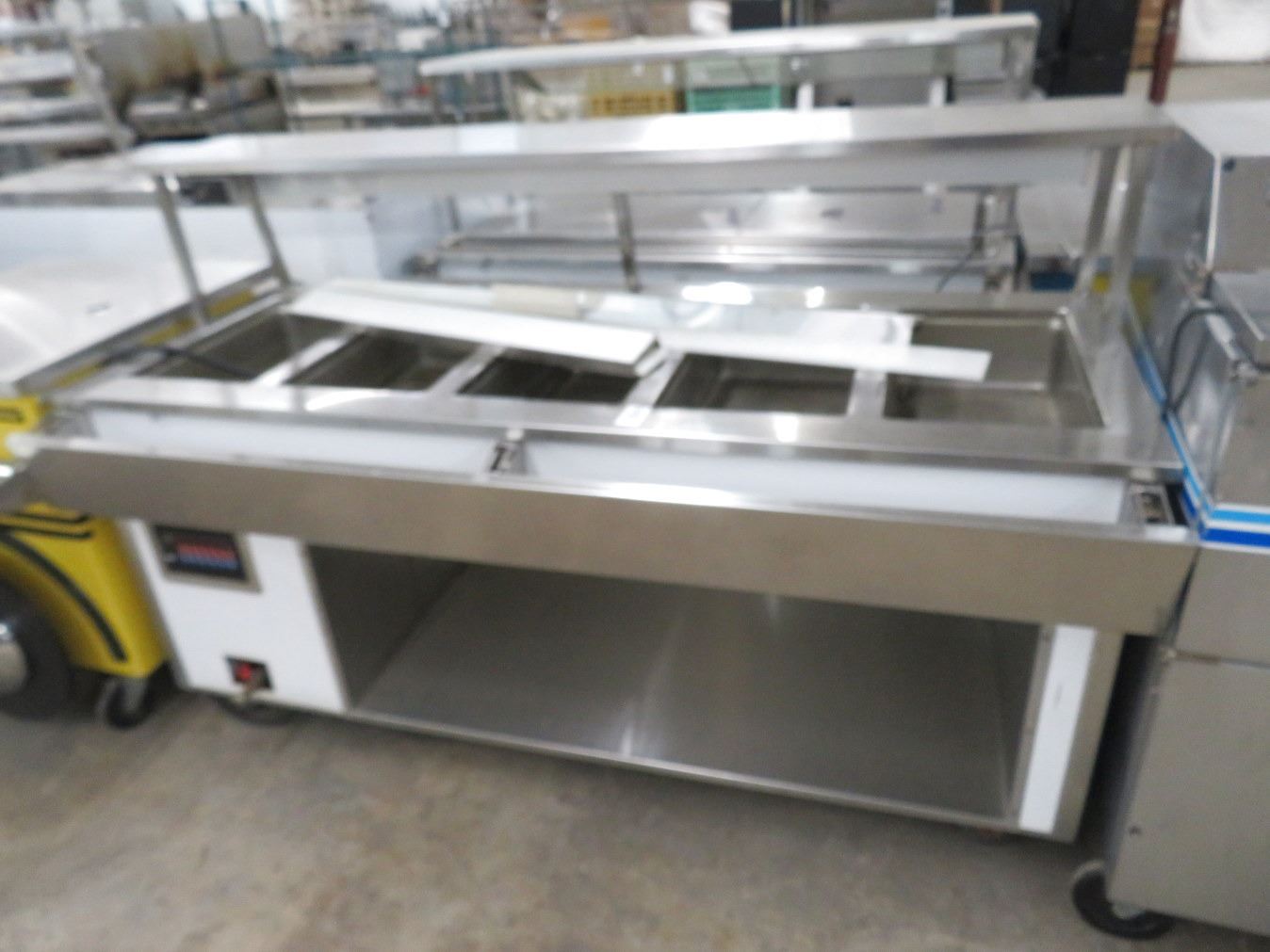 Volrath 6' 5 Comp Electric Steam Table w/Sneeze Guard, Heat Lamp & Tray Slide