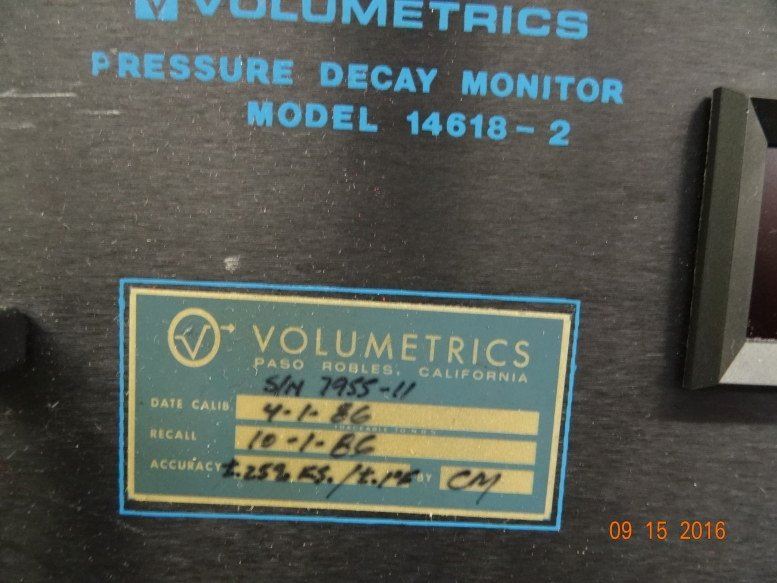 Volvmetrics # 14618-2 Pressure Decay Monitor