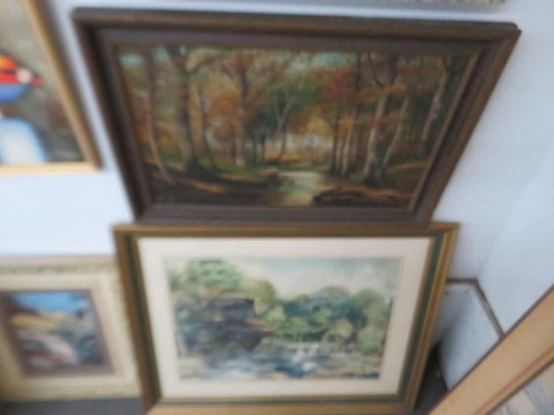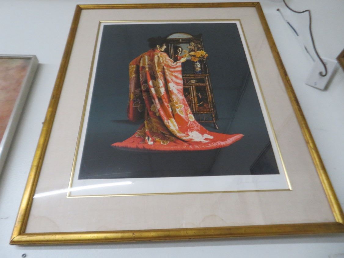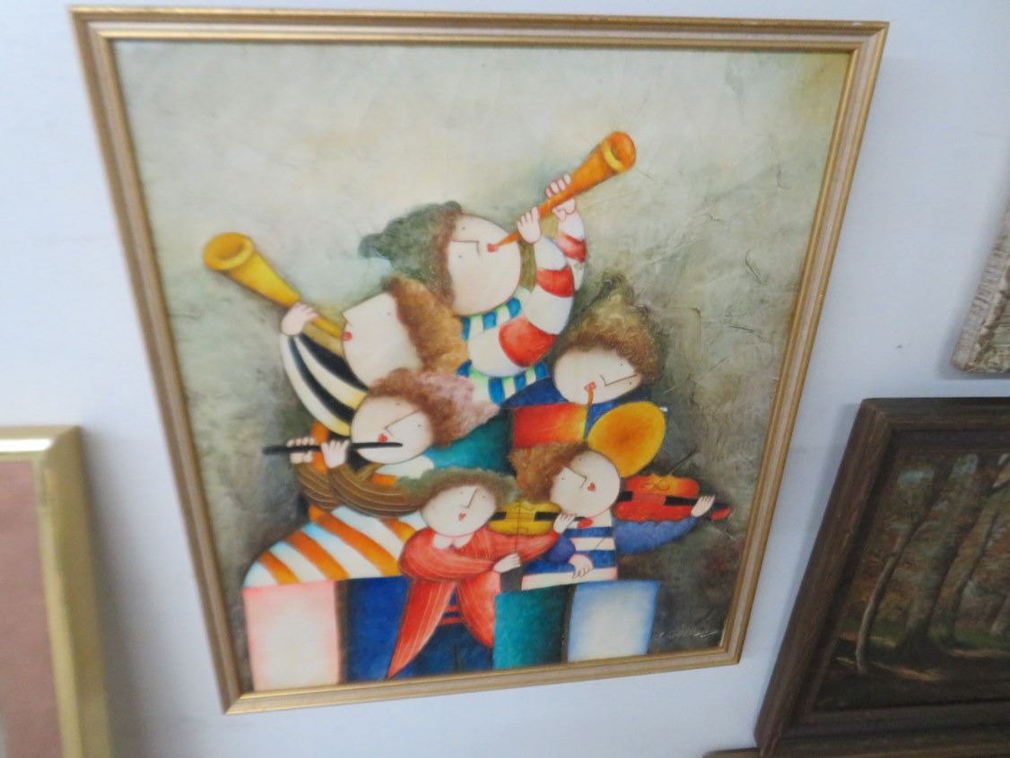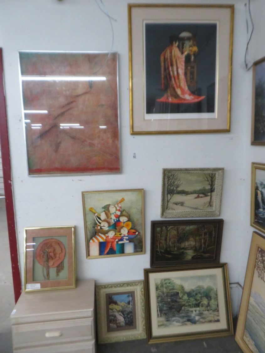 Wall Lot Asst. Artwork Includes 1986 Large Signed Abstract Pastel/Winslow Oil, Lady Litho