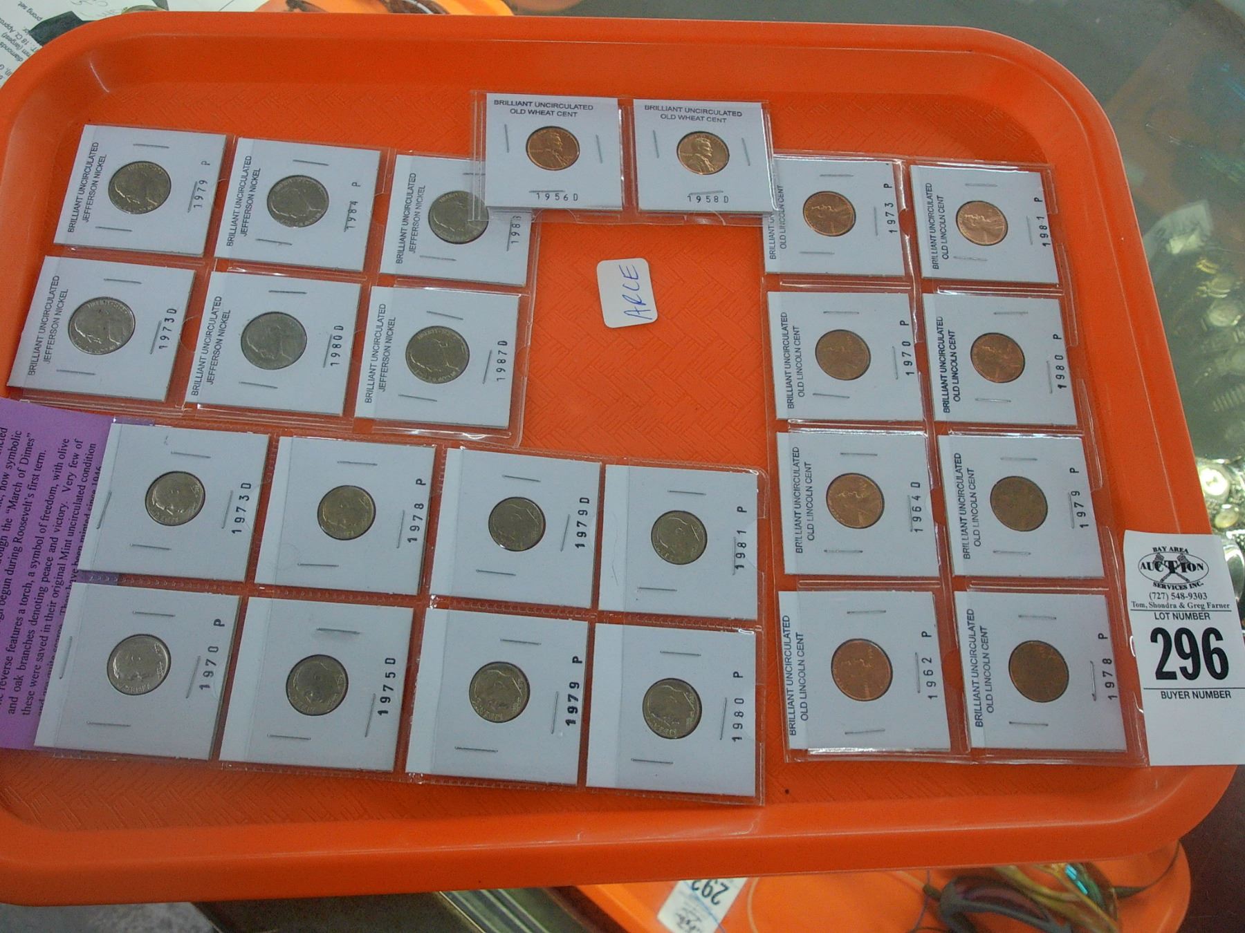 Wheat/Lincoln Cents 10, Jefferson Nickels 6, Roosevelt Dimes - 8