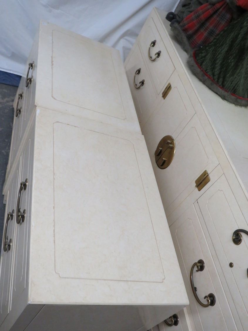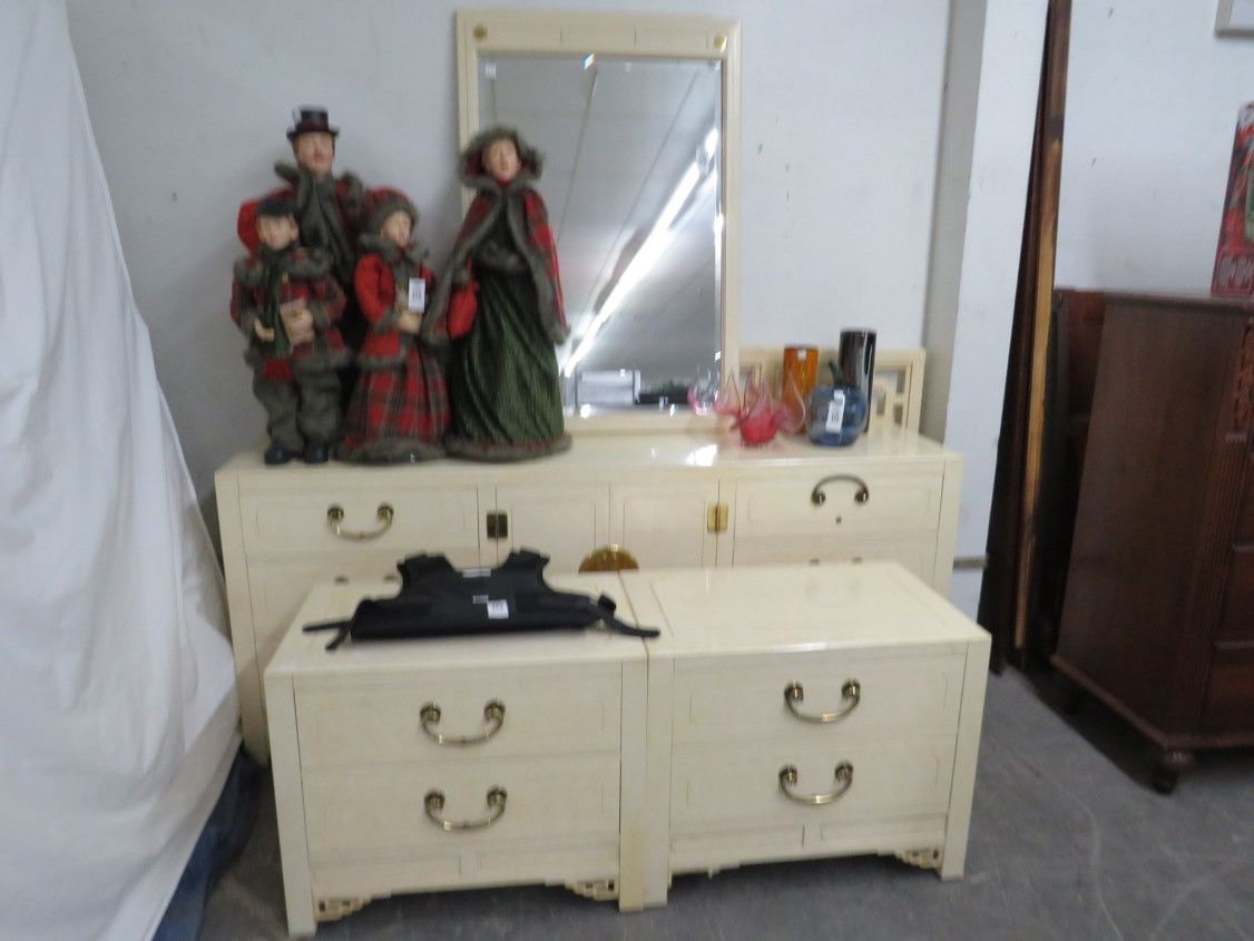 White Mebane Bone w/Brass Trim Dresser/Mirror/Nightstands/King Headboard Set