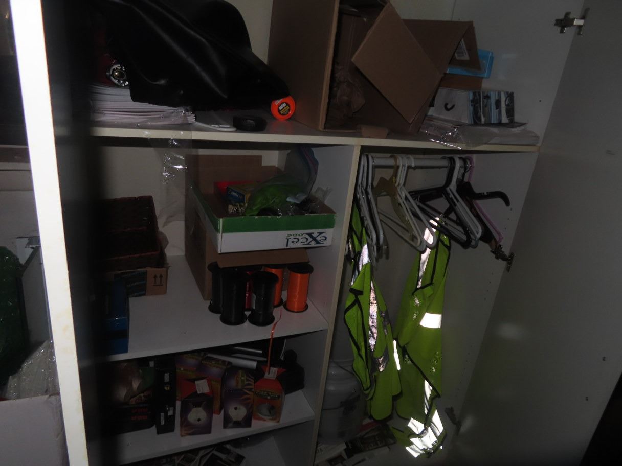White Mica Storage Cabinet w/Safety Vest & Light Bulbs
