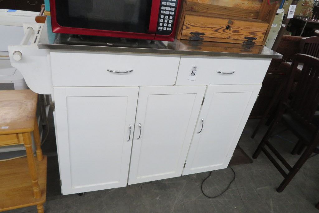 White Rolling 2 Over 3 S/S Top Kitchen Island