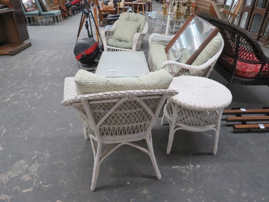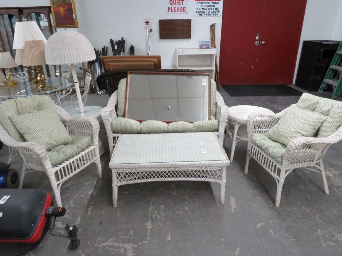Wicker Padded Loveseat/Armchairs/Coffee/End/Lamp Table Set