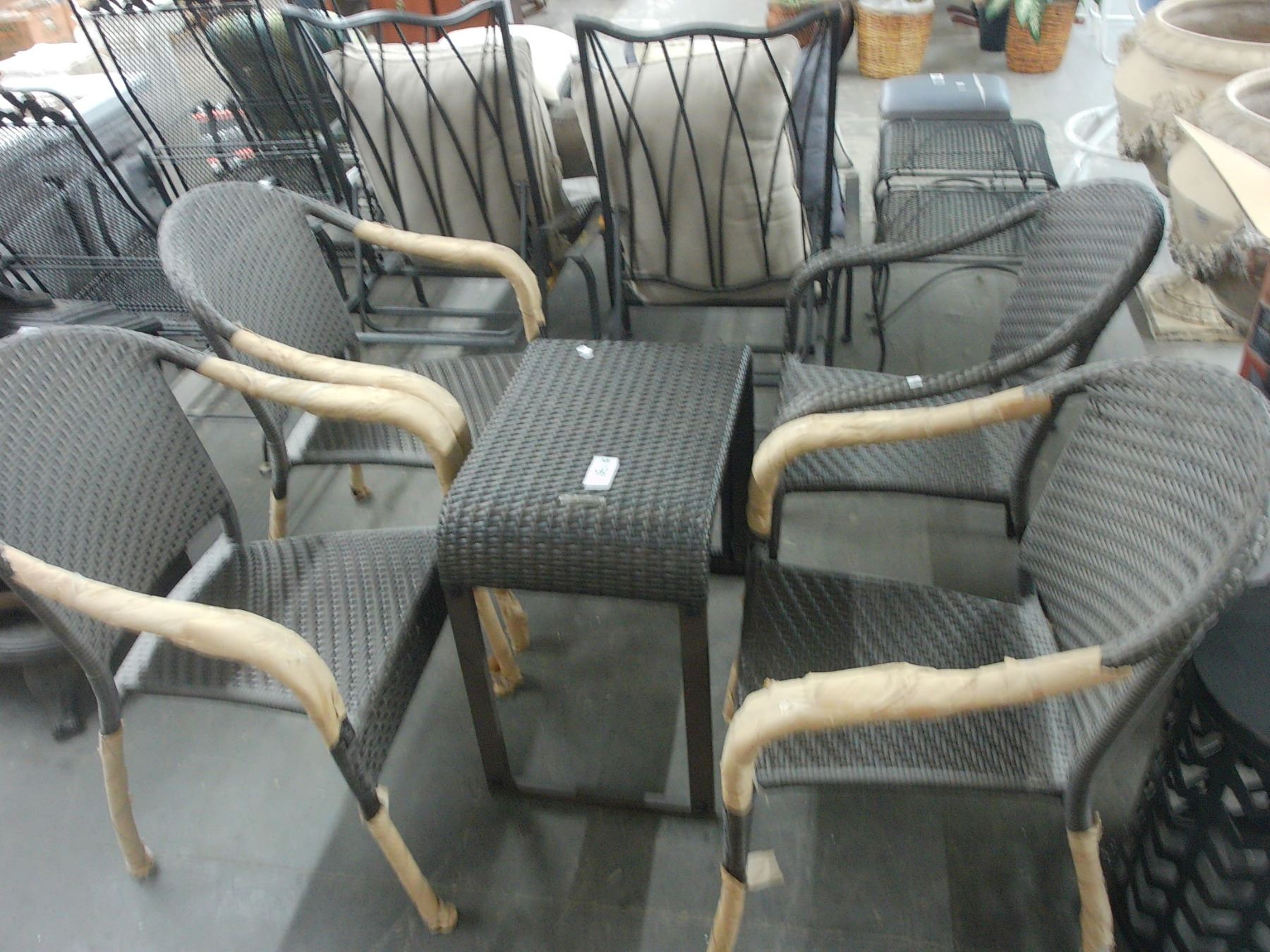 Wicker Style Patio Armchairs 4 w/End Table Set