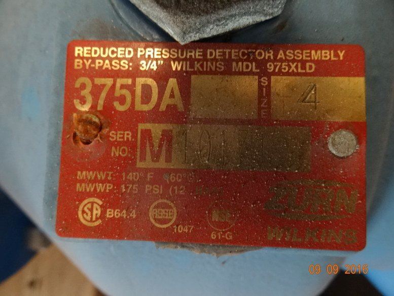 Wilkins Reduced Pressure Principle Detector Backflow Preventer