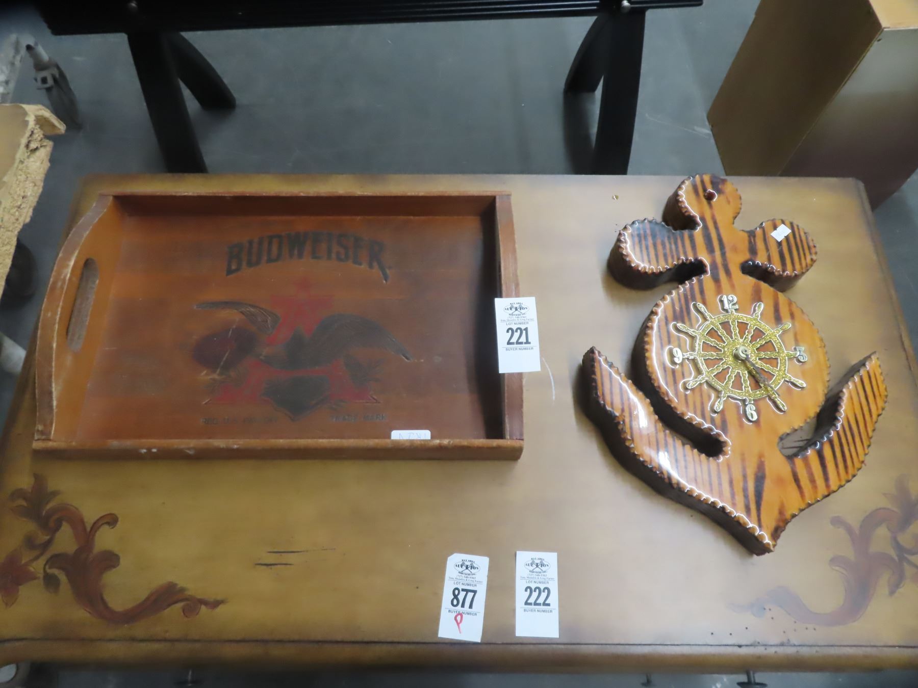 Wood Anchor Clock and Vintage Wood Budweiser Tray