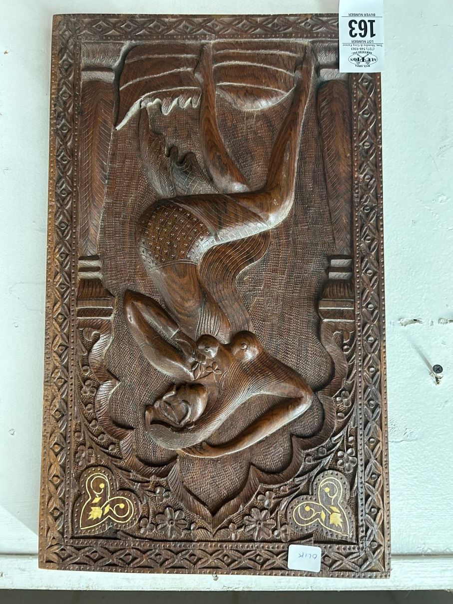 Wood Carved Nude Wall Art of Woman - 10" X 20"