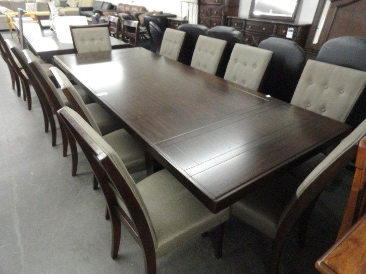 Wood Dining Table w/10 Upholstered Chairs - Scratches
