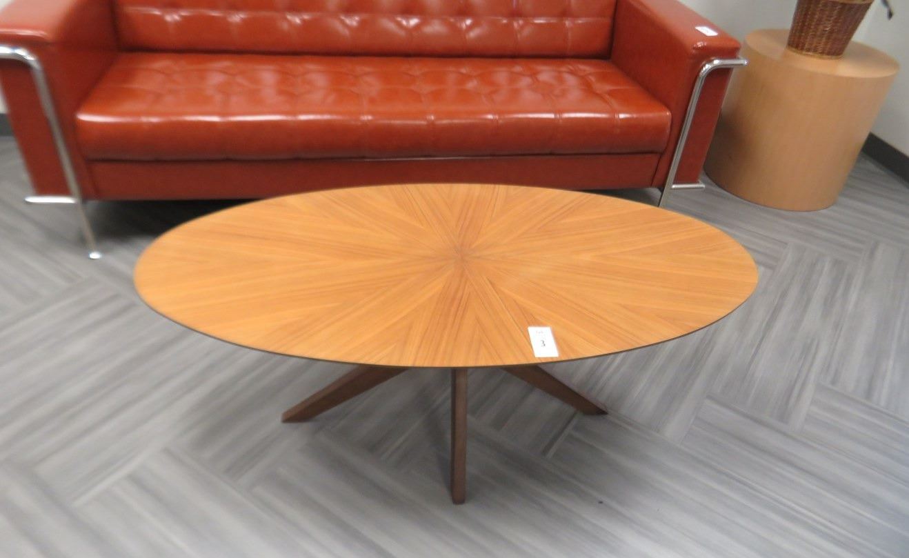 Wood Oval Coffee Table & Round Plant Stand