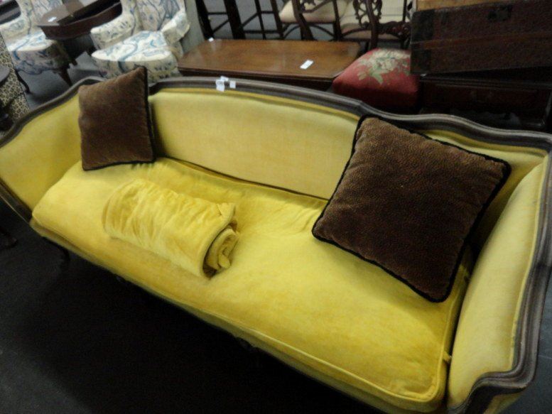 Wood Trim Horse Hair Stuffed Sofa