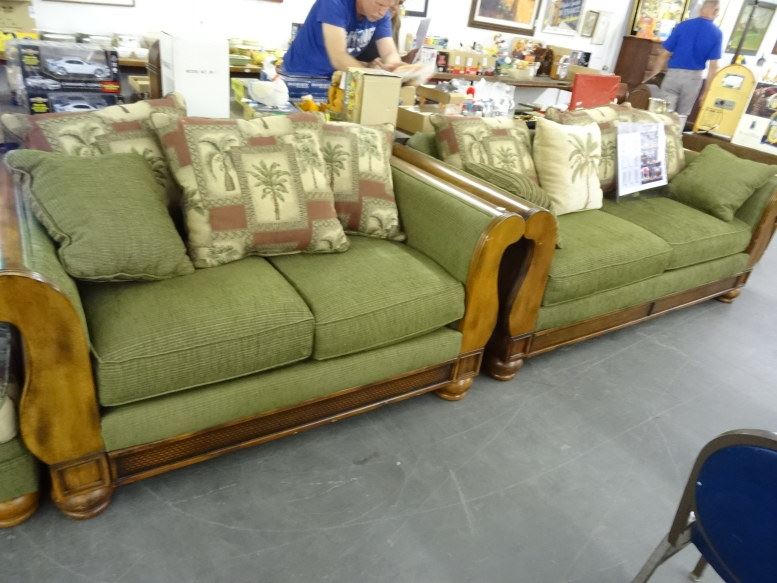 Wood Trim Palm Accent Sofa, Loveseat, Chair Set