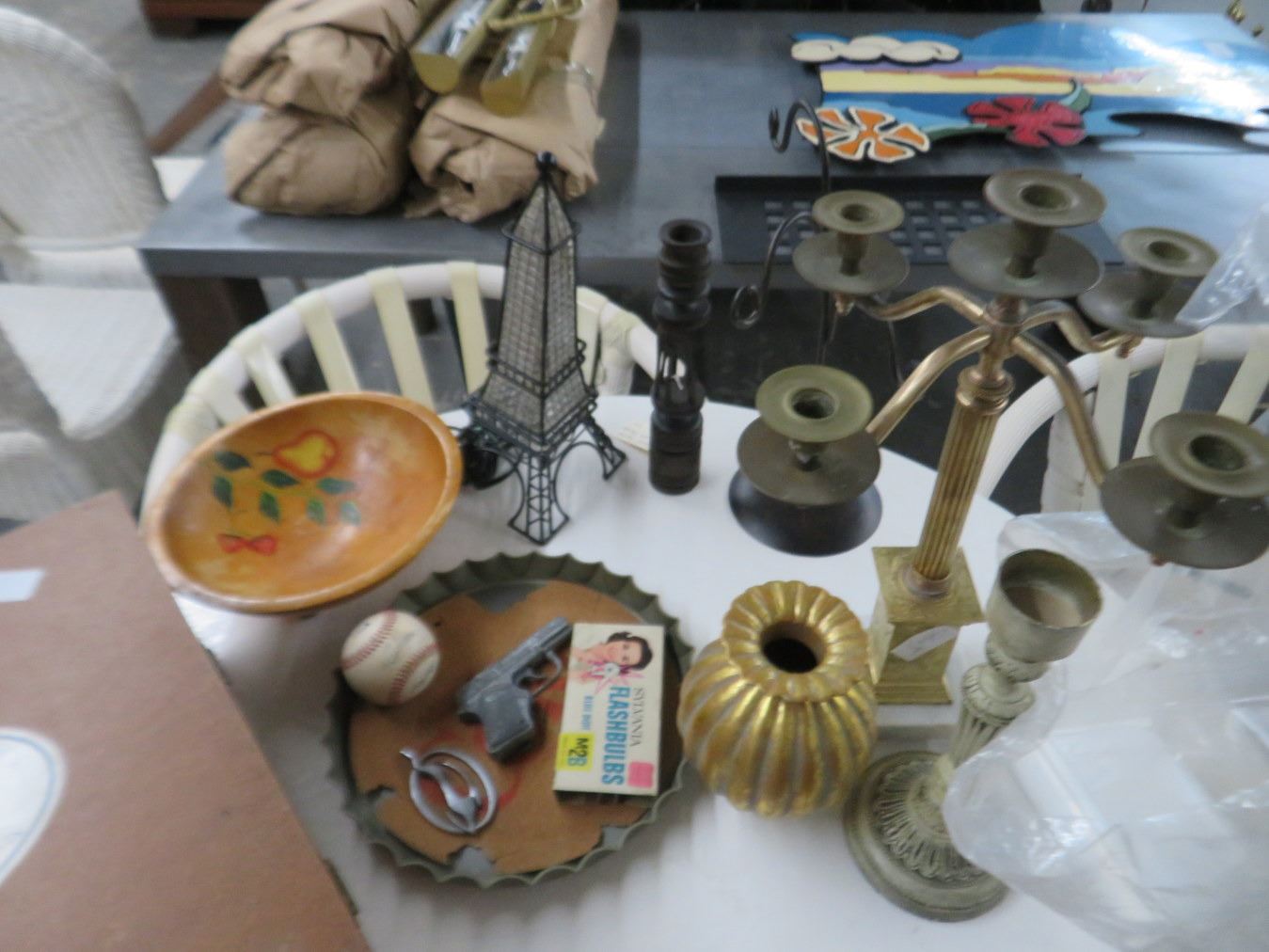 Wood Wall Knick Knack Shelf, Bird Trap Sample Box, Candlestands & Table Décor