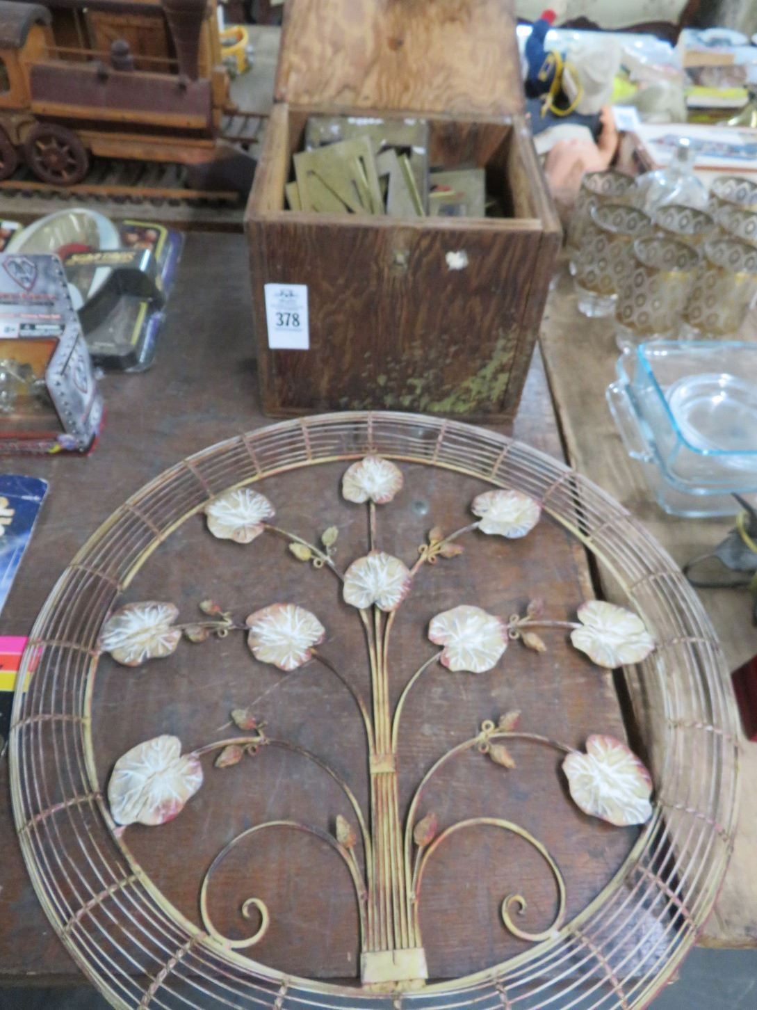 Wooden Box w/Brass Stencils, Floral Metal Wall Art