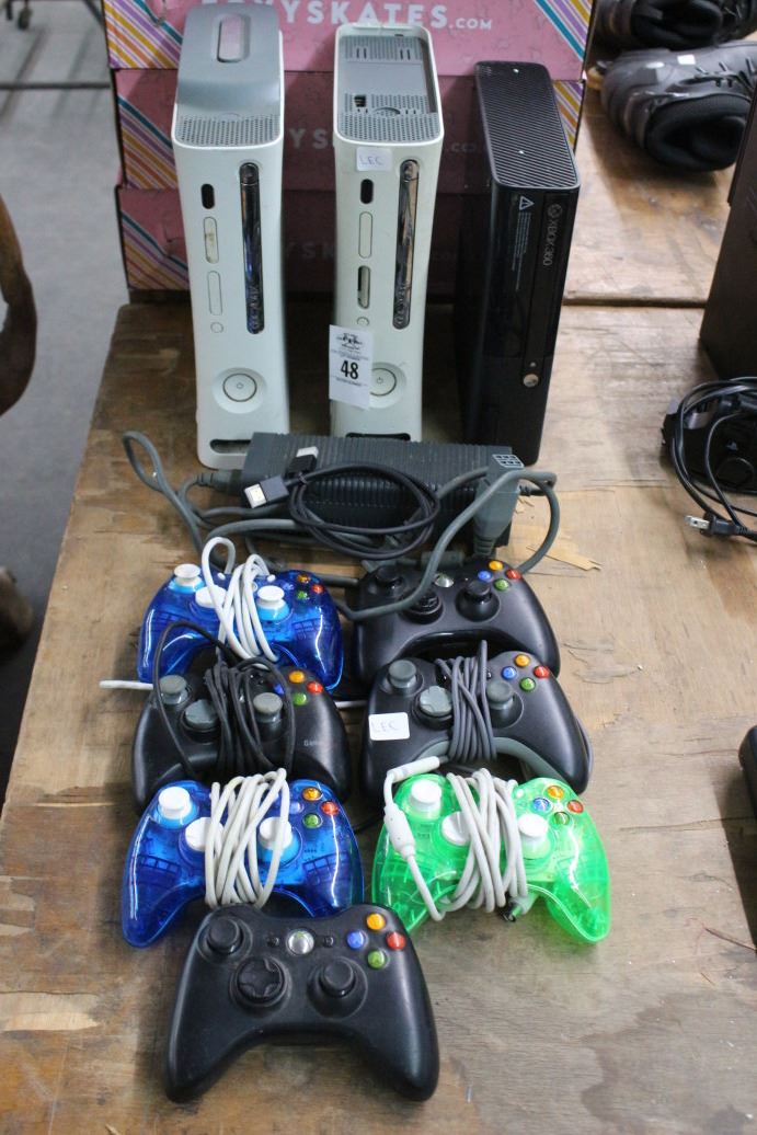Xbox 360 Consoles 3 w/One Adapter and 7 Controllers