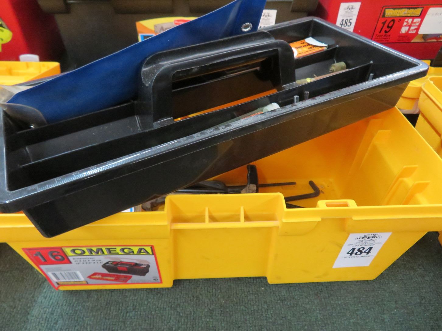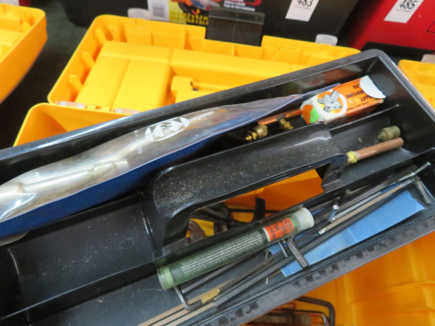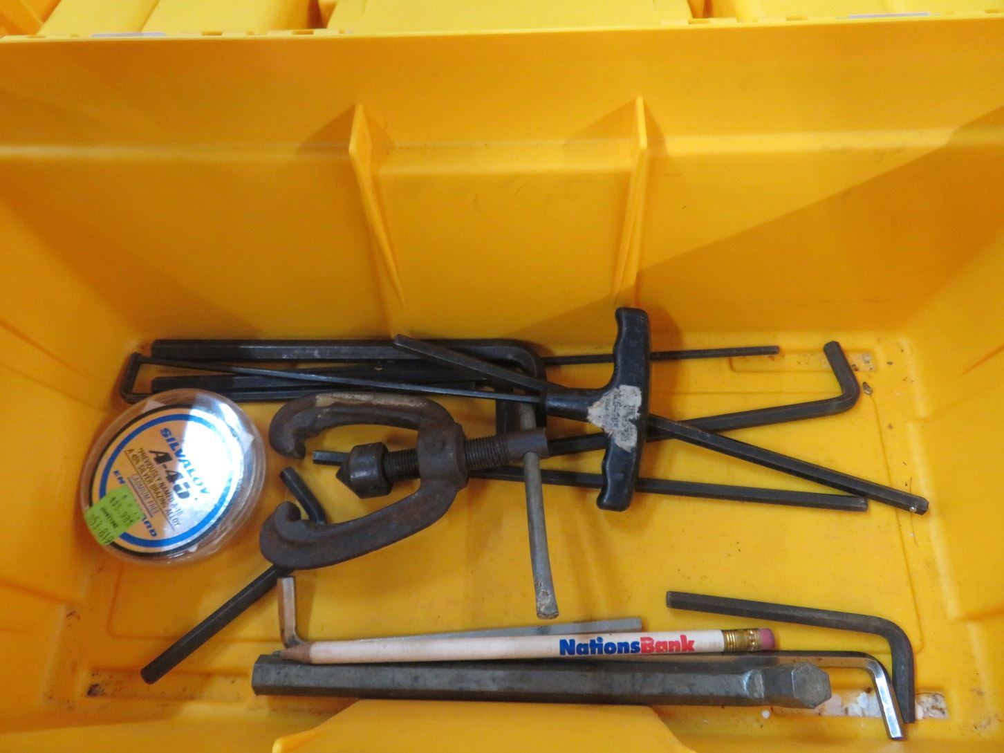Yellow Toolbox w/Allen Wrenches and Hand Tools